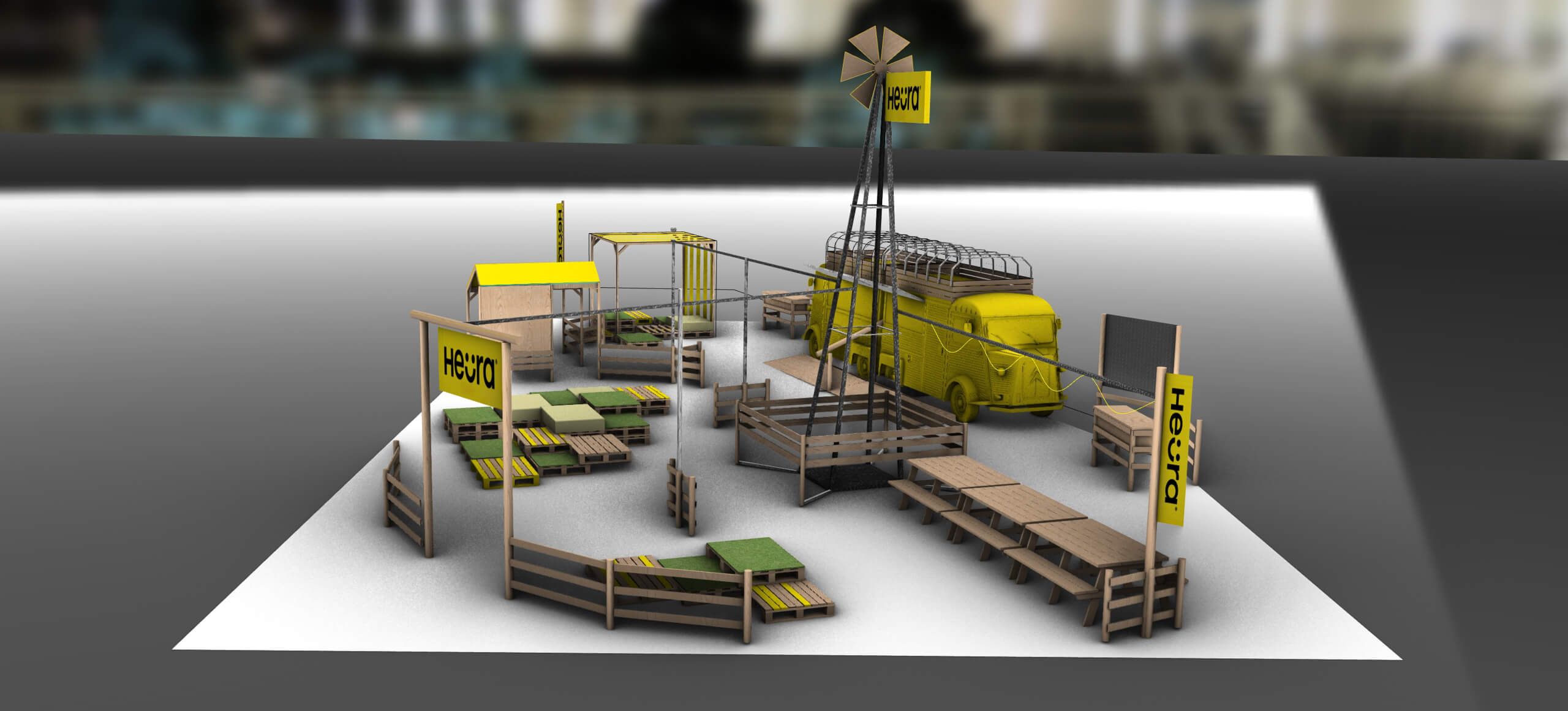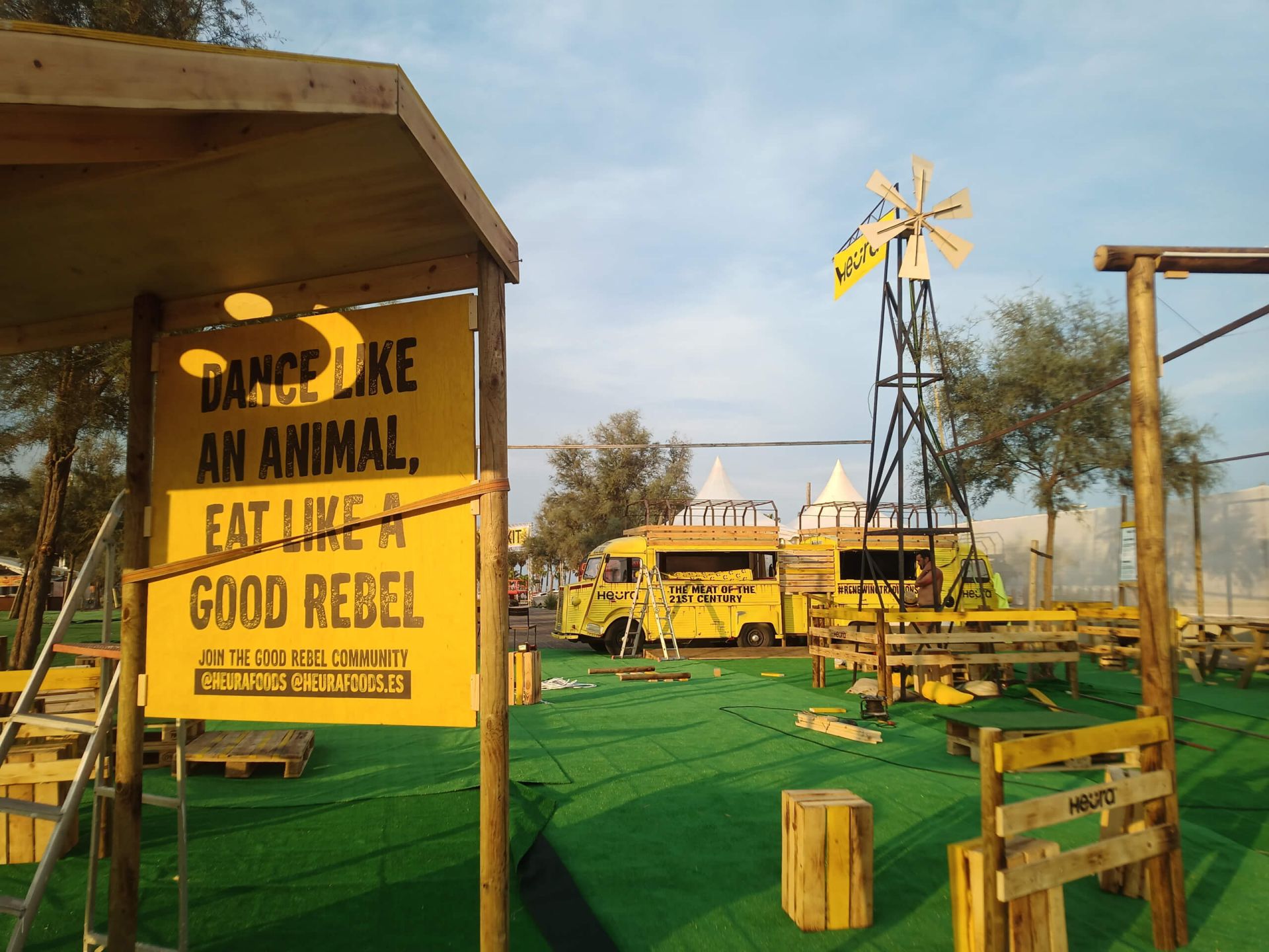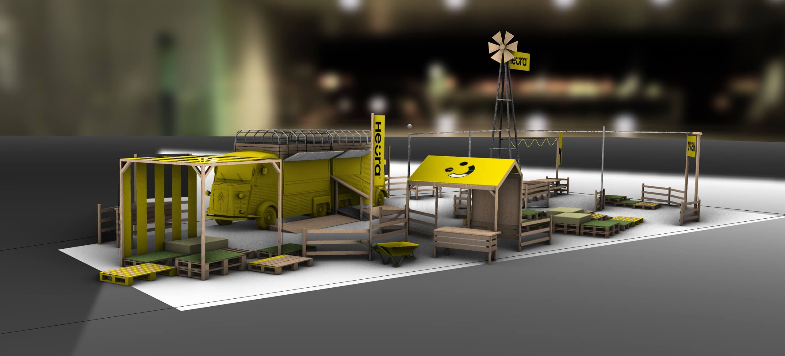 Haciendo alusión al lema de Heura, el espacio simulaba una granja en desuso. El diseño de espacio incluía  carpintería, un molino de viento, espacios de dispersión e iluminación.